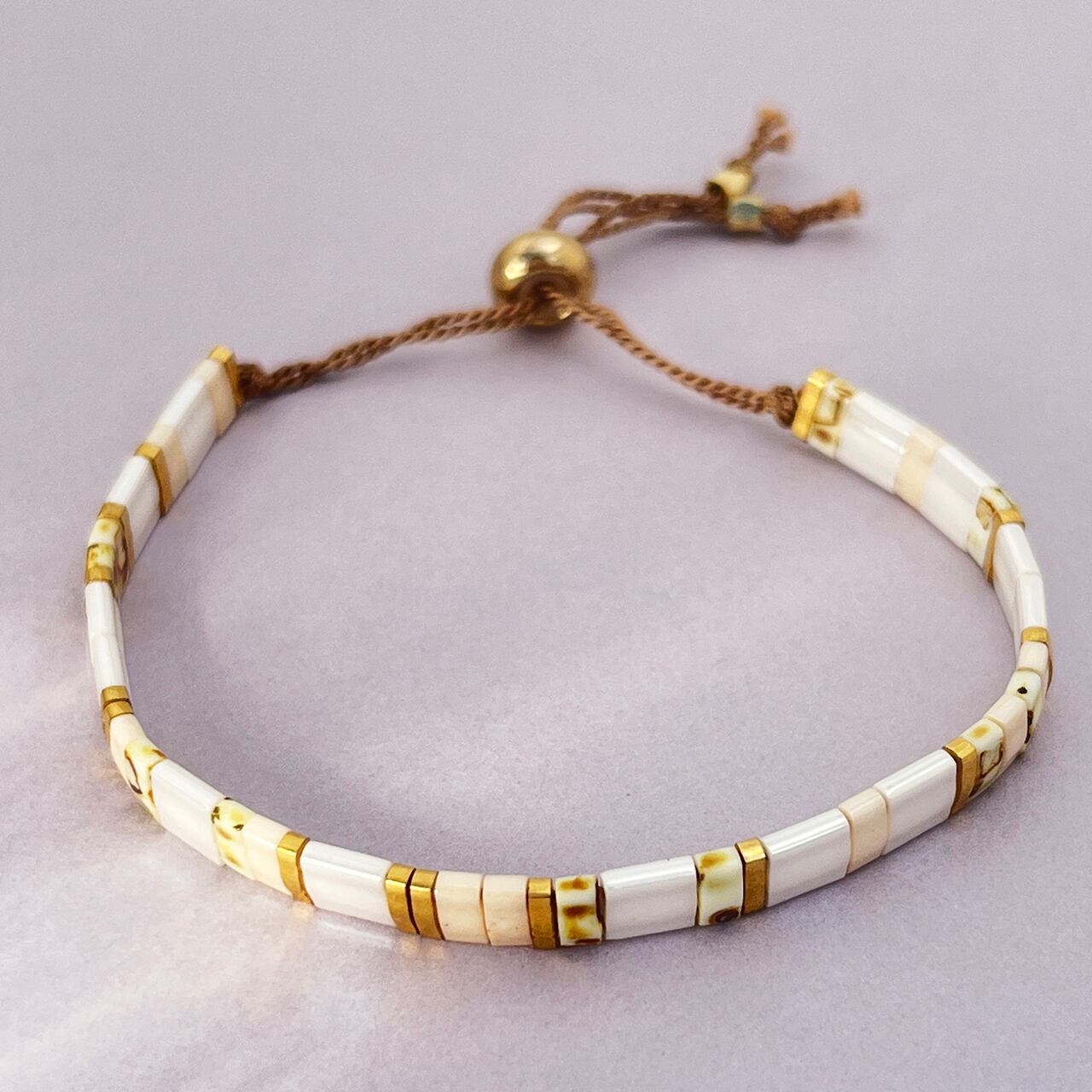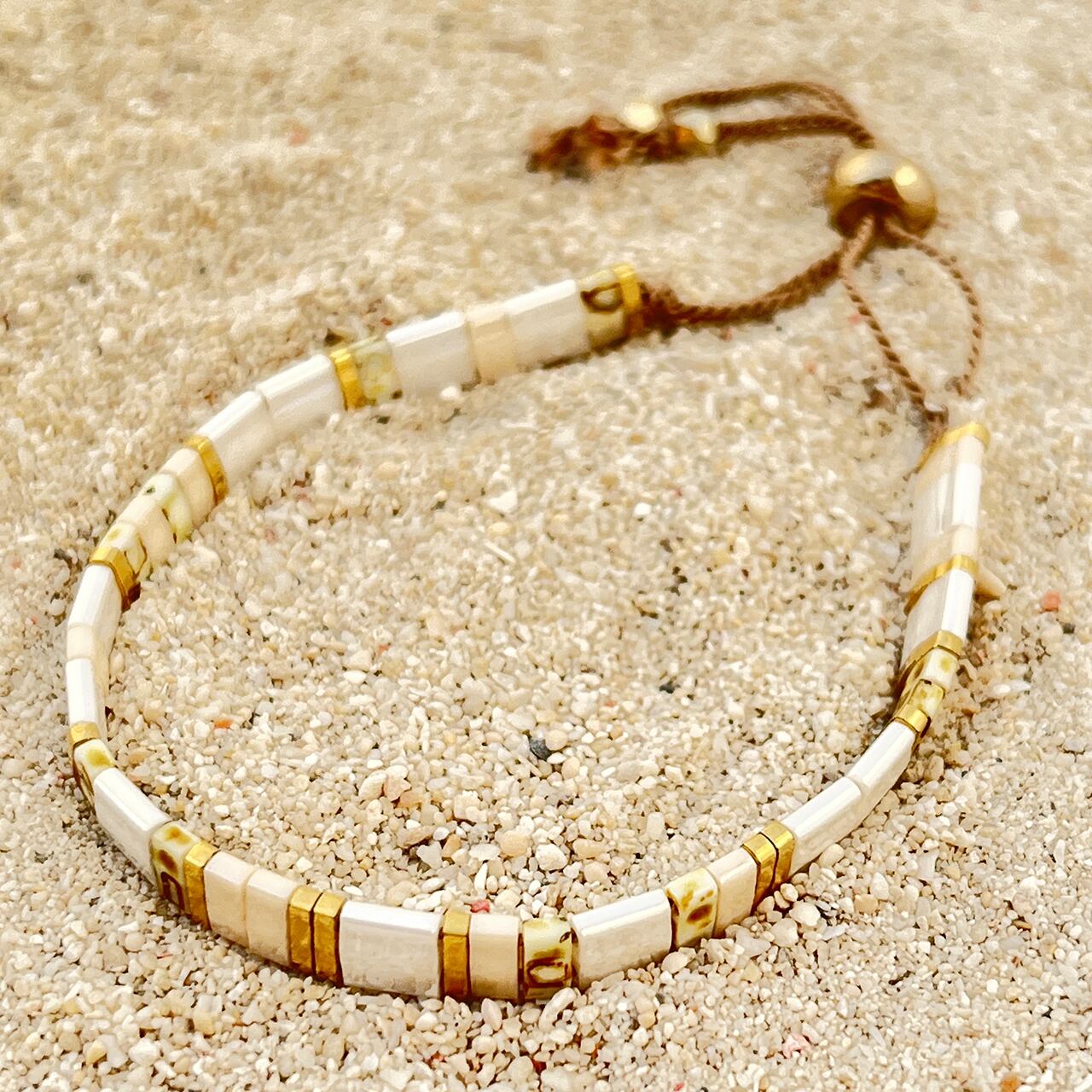 -WHITE SANDS- Tila Bead Bracelet|Ecru & White